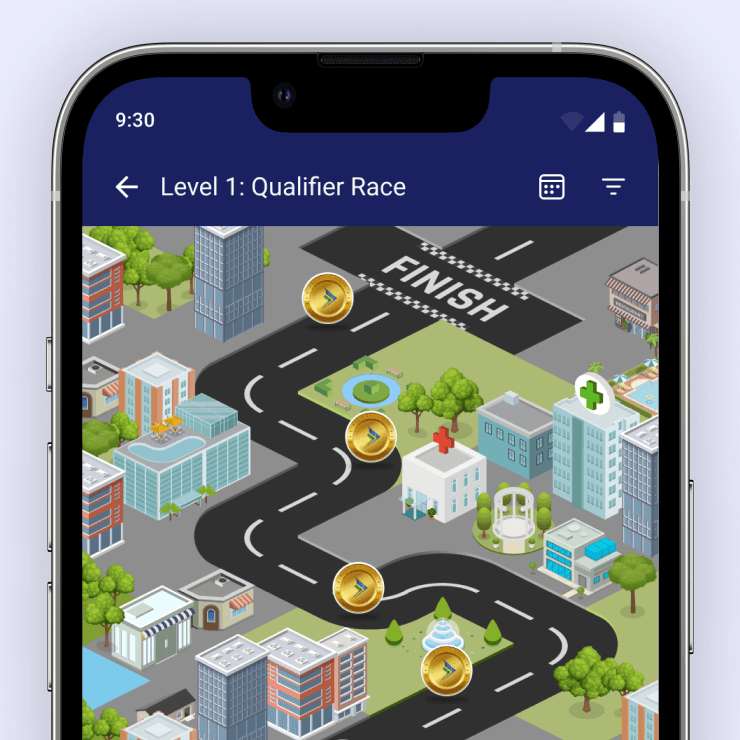 A visual race map helps MRs understand their monthly standing relative to their peers, making competition transparent and easy to interpret.